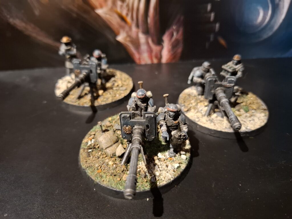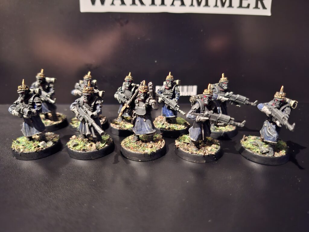 Neben den Dämonen ist dies aktuell meine Hauptfraktion. Ich mag einfach den vielseitigen Mix aus Infanterie und Panzer. Somit kann man versuchen, sich auf Gegner etwas einzustellen. Außerdem mag ich die Vielfalt, die man in dieser Armee ausleben kann. Denn es gibt wenige WH40k Armeen, die man auch mit Alternativ Modellen so perfekt aufstocken kann. Denn die Armeen des Astra Militarums bestehen aus einem Sammelsurium verschiedenster Armeen, die nach Bedarf zusammengefasst werden. Und dank 3D-Druck bekommt man dadurch eine große Vielfalt, die auch optisch was hergeben.