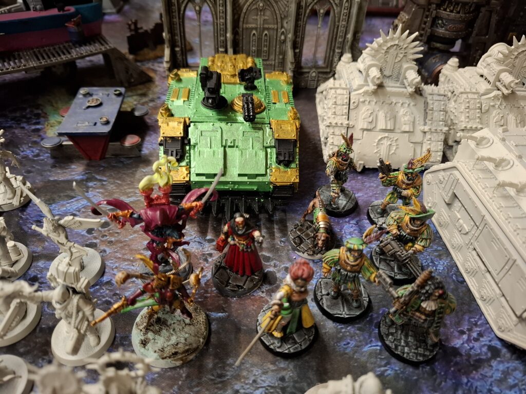 Die Imperial Navy Breachers sind schon fertig bemalt und auch beim zweiten Trupp, der Rogue Trader Entourage mit den Void Men-at-Arms, geht es sehr gut voran. Hier muss ich nur noch einige Details ausarbeiten und diese sind ebenfalls fertig. Dann noch das Rhino fertigstellen und ich kann mir den nächsten Trupp vornehmen. Und ja, das Rhino schaut etwas protzig aus, das ist aber beabsichtigt, das ein Rogue Trader natürlich etwas auffallen darf.