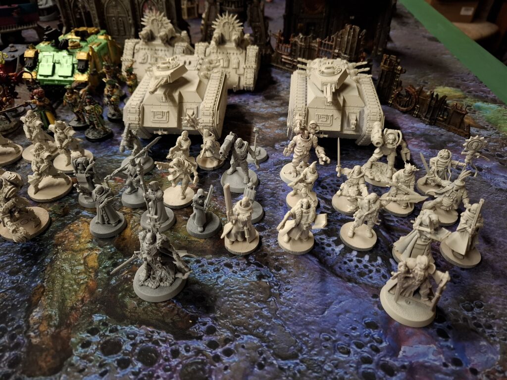 Hier also eine Bestandsaufnahme, wie es gesamt um die Armee aussieht. Die Trupps und Charaktere sind soweit alle gedruckt und herausgesucht. Mir fehlt aktuell nur noch ein Modell bei einem der beiden Inquisitorial Agents Trupps und der eine oder andere Servoschädel.